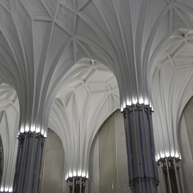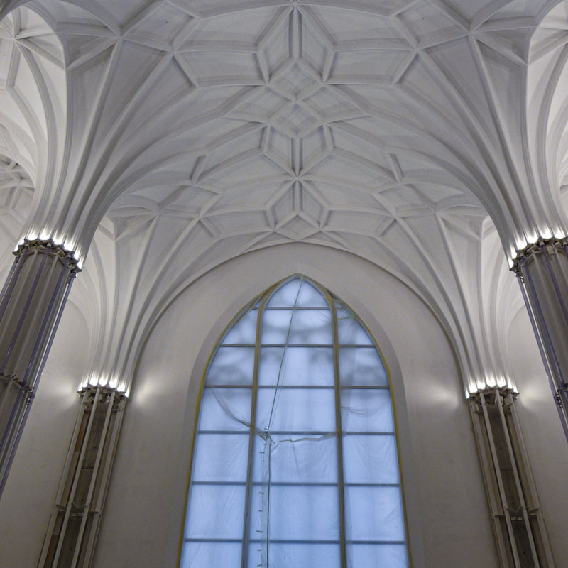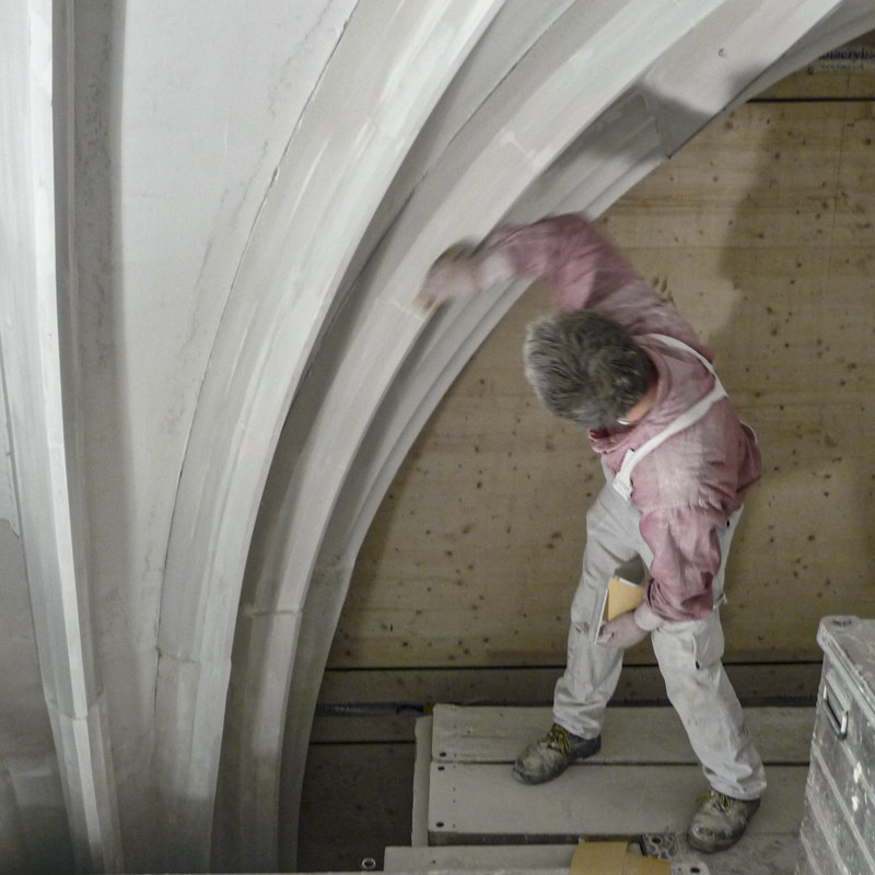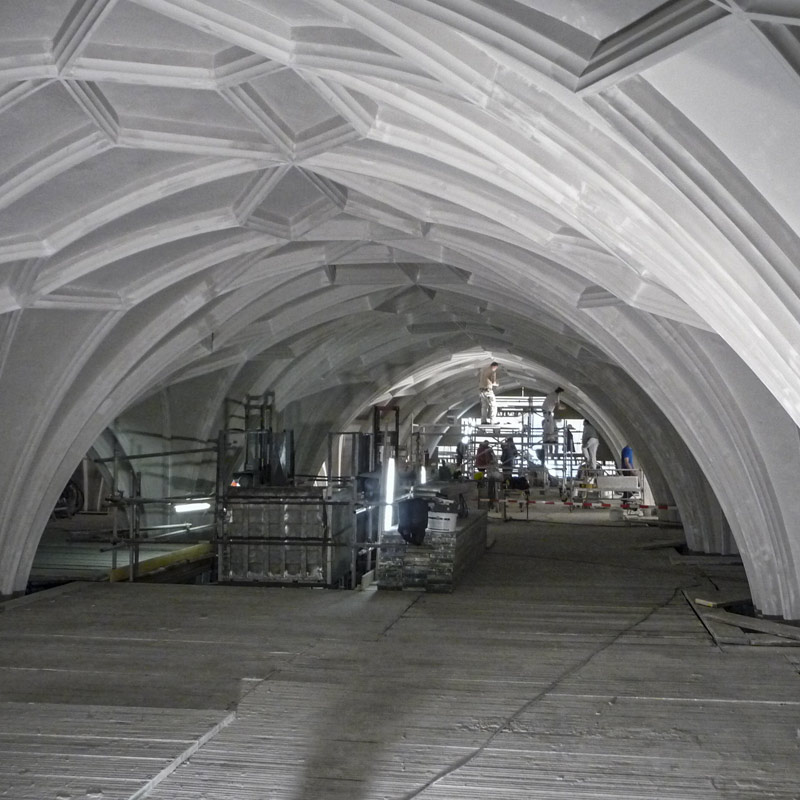 Neubau des Paulinums JAHR 2015 ORT LEIPZIG KUNDE Stuck & Restaurierung Martin Ranft JAHR 2015 ORT LEIPZIG KUNDE Stuck & Restaurierung Martin Ranft Im Neubau des Paulinums wurden Kreuzrippengewölbe neu interpretiert. Die Erstellung erfolgte jedoch in traditioneller Stucktechnik. Die Herausforderung war neben der Größe des Objektes in dem mehre Stuckateurfirmen unter einer „Federführung“ gemeinsam Hand in Hand arbeiteten; auch speziell verlaufende, mehrfach verwundene Profilformen die direkt an der Decke angepasst werden mussten.